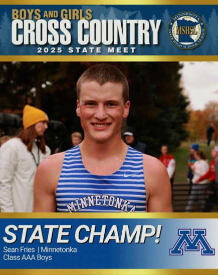 Congratulations to Nick Gilles for becoming the first cross country state champion in Minnetonka High School history, racing the 5000 meter course at St. Olaf College in 15:22! Also, to Andrew Vos for placing 13th and earning All State honors, and for the team placing 4th!